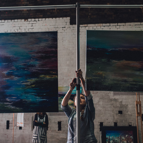 Next to join the team was Marni Vidal of the fabulous Marni V Photography. I had admired her portfolio and was thrilled when she said she'd love to be part of the exhibition. We needed flowers and foliage in this raw environment so next up was the gorgeous Emma from Orchis Floral Design based at Hagglers Corner in Sheffield. Below you can see her dressing a cool macrame arch, the macrame was made by the extremely talented Lucy from Little White Attic. Cake signs and Meet the Artist signs were next on the list so a fellow Geordie was recruited, Cath from Raspberry Toast made some beautiful signs and hand guilded them with copper leaf for that urban edge.
